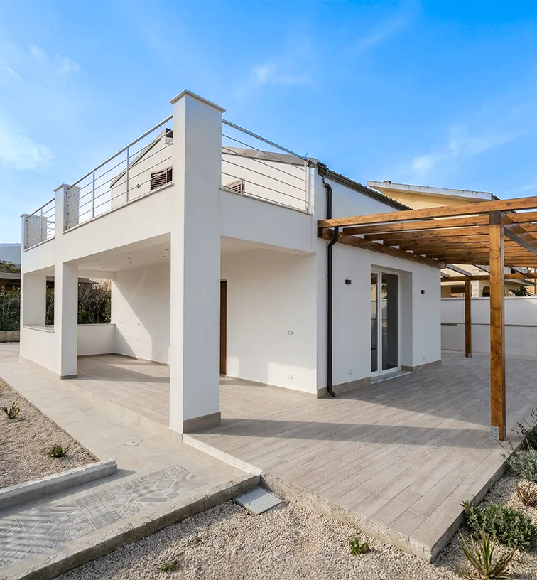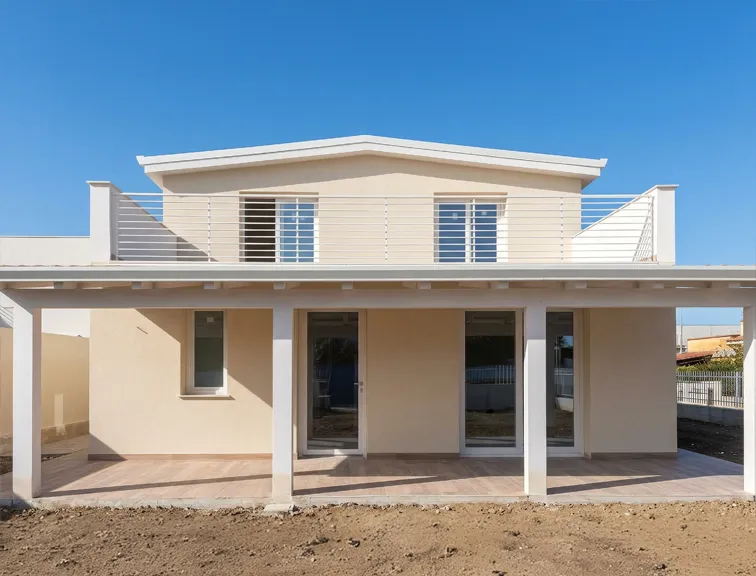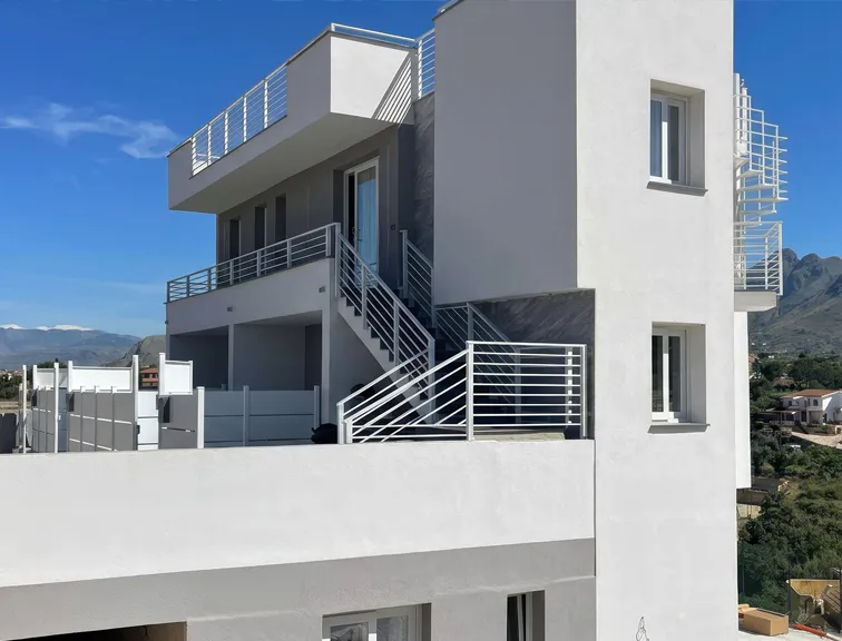 Moderna villa bifamiliare con infissi misti e balconi in ferro