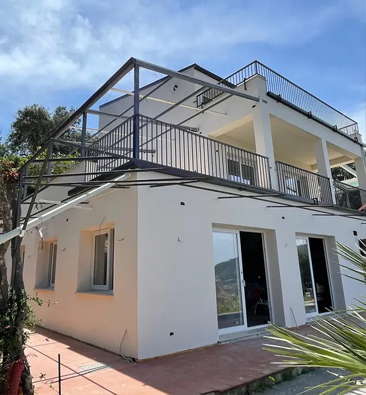Infissi, parapetto in vetro e pergole per villa privata